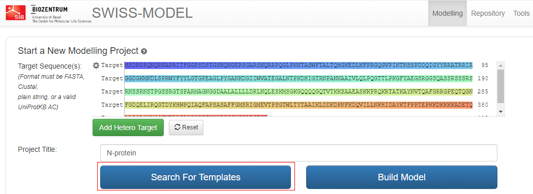 The following shows the procedure and results of single-sourcing modeling using SWISS-MODEL.