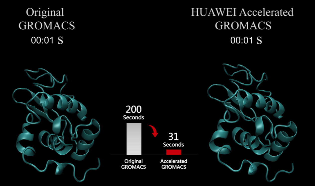 Protein structures derived from homologous modeling can be used in molecular dynamics simulations. This process can be performed using tools such as Gromacs, which is normally time-consuming. HUAWEI CLOUD EIHealth provides an accelerated version of Gromacs that completes this process six times faster than the traditional version.