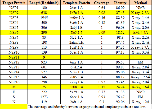 One of the proteins, NSP4, does not have a good homologous protein in SARS-CoV. It is modeled with A59 of hepatitis viruses in mice, and its identity is greater than 60%.