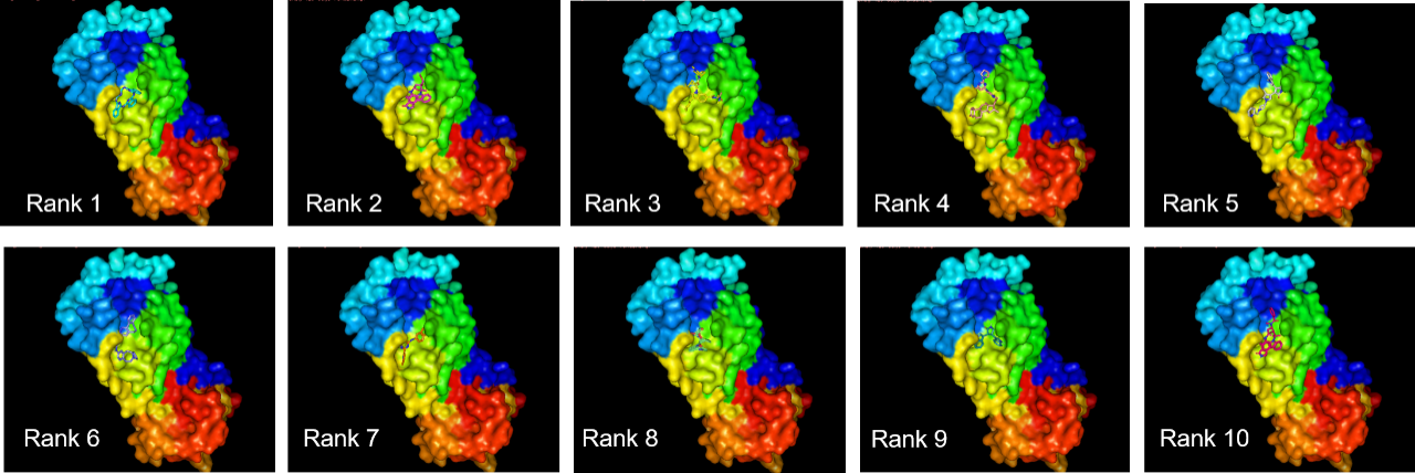 · With the help of the HUAWEI CLOUD AI Ascend cluster service and the EIHealth drug R&D platform, we completed large-scale virtual screening of the NSP16 target protein in the DrugBank screening library within 20 minutes. The following shows the result.