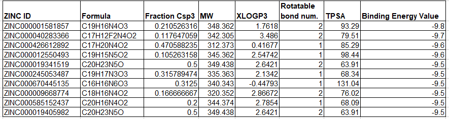Top 10 Drugs Found Through ZINC-Based Drug Screening