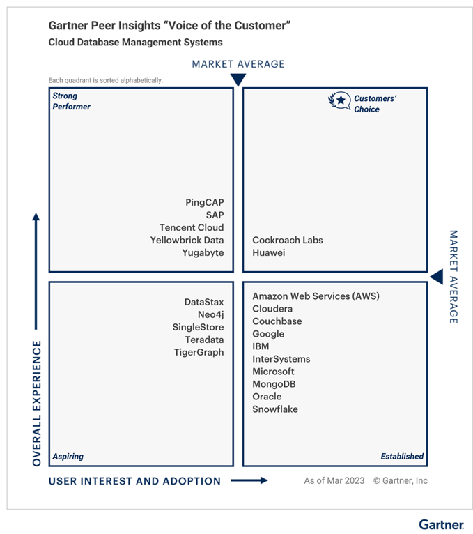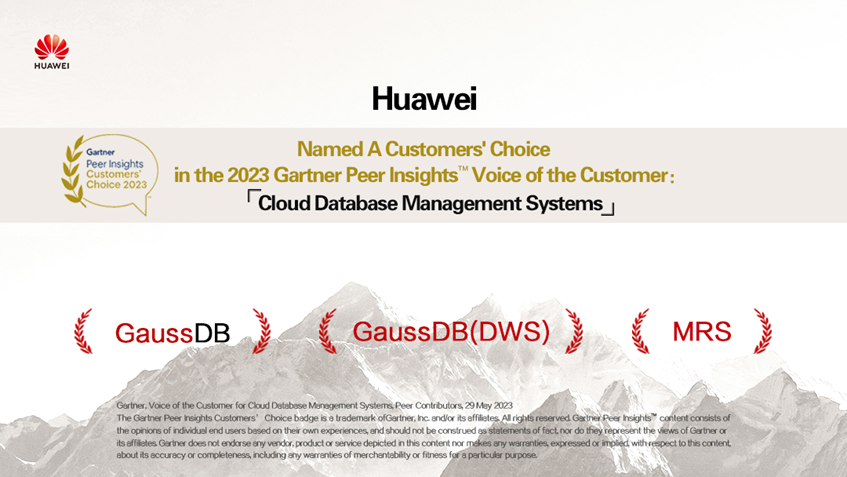 Huawei Named in 2023 Gartner Peer Insights™ 'Voice of the Customer 'for Cloud Database Management Systems
