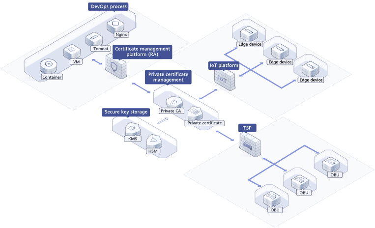 Private certificates are used to identify and protect internal applications, services, devices, and user details of an organization, such as internal networks of an enterprise, Internet of Vehicles (IoV) platforms, and Internet of Things (IoT) platforms.