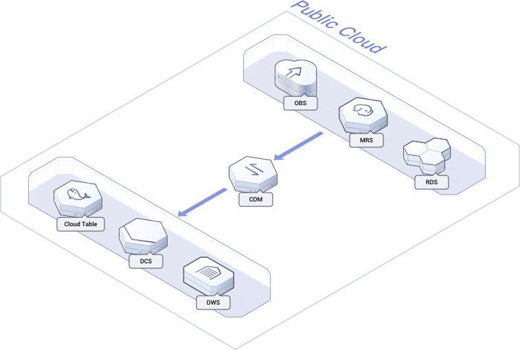 MRS (Hive, HDFS, and HBase), DWS, RDS, CloudTable, DIS, and Elasticsearch