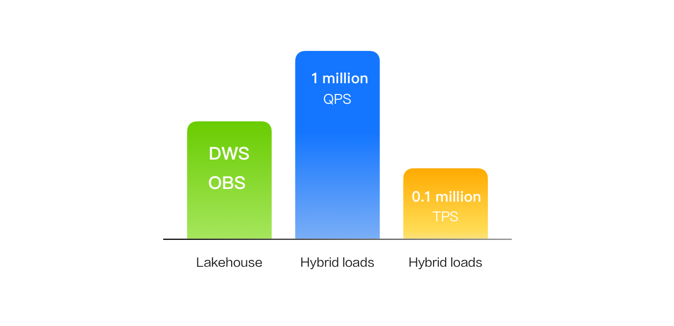GaussDB(DWS) can handle over 1 million QPS and 100,000 TPS, ensuring strong transaction consistency.