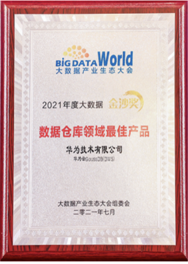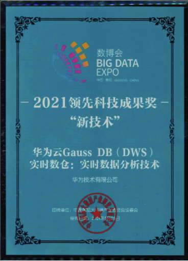 GaussDB(DWS) won the award for its outstanding analysis performance and advanced design.