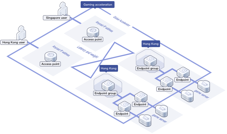 Gaming servers are usually deployed in a centralized mode to cover a large area. With Global Accelerator, gamers can access the server that is topographically closest to them to enjoy ultra-low network latency and a fantastic gaming experience.