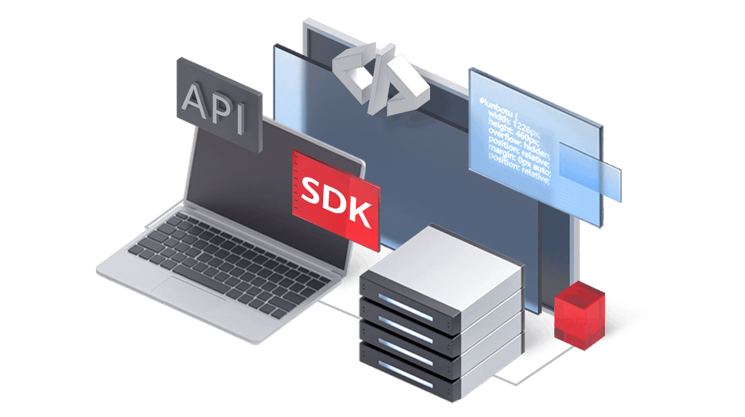 RESTful APIs, visual API debugging, Java, Python, and Go SDKs, and further development and integration are provided.