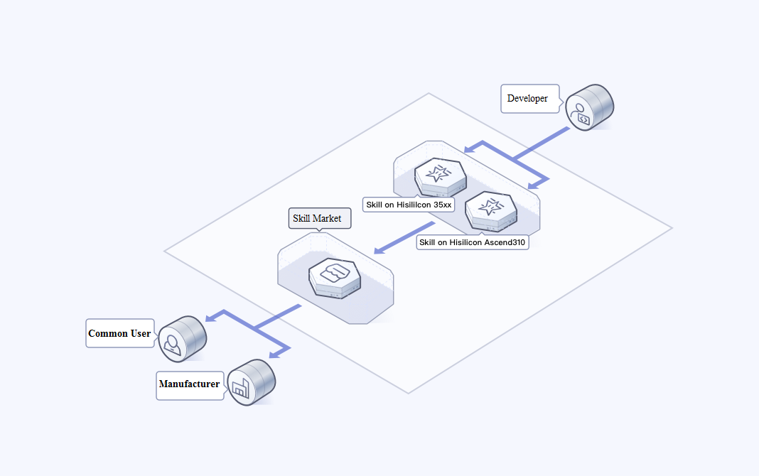 The HiLens platform provides a skill market, enabling developers to release developed skills that run on HiSilicon 35xx series and Ascend 310 series chips. Other developers can buy these skills in the skill market.
