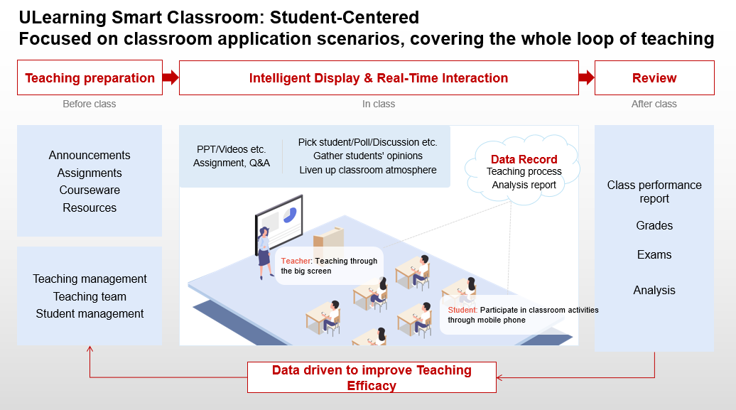 Huawei-ULearning’s IdeaHub-U-Class solution enables schools to innovate new teaching methods, to conduct hybrid (physical + remote) teaching or 100% online teaching during the COVID-19 pandemic as well as physical classroom teaching after the pandemic.