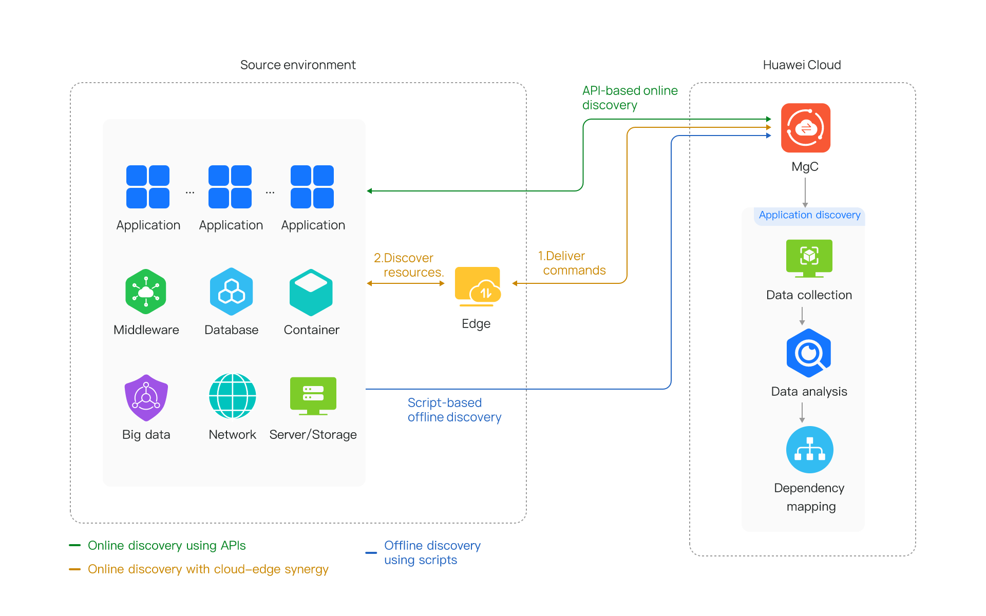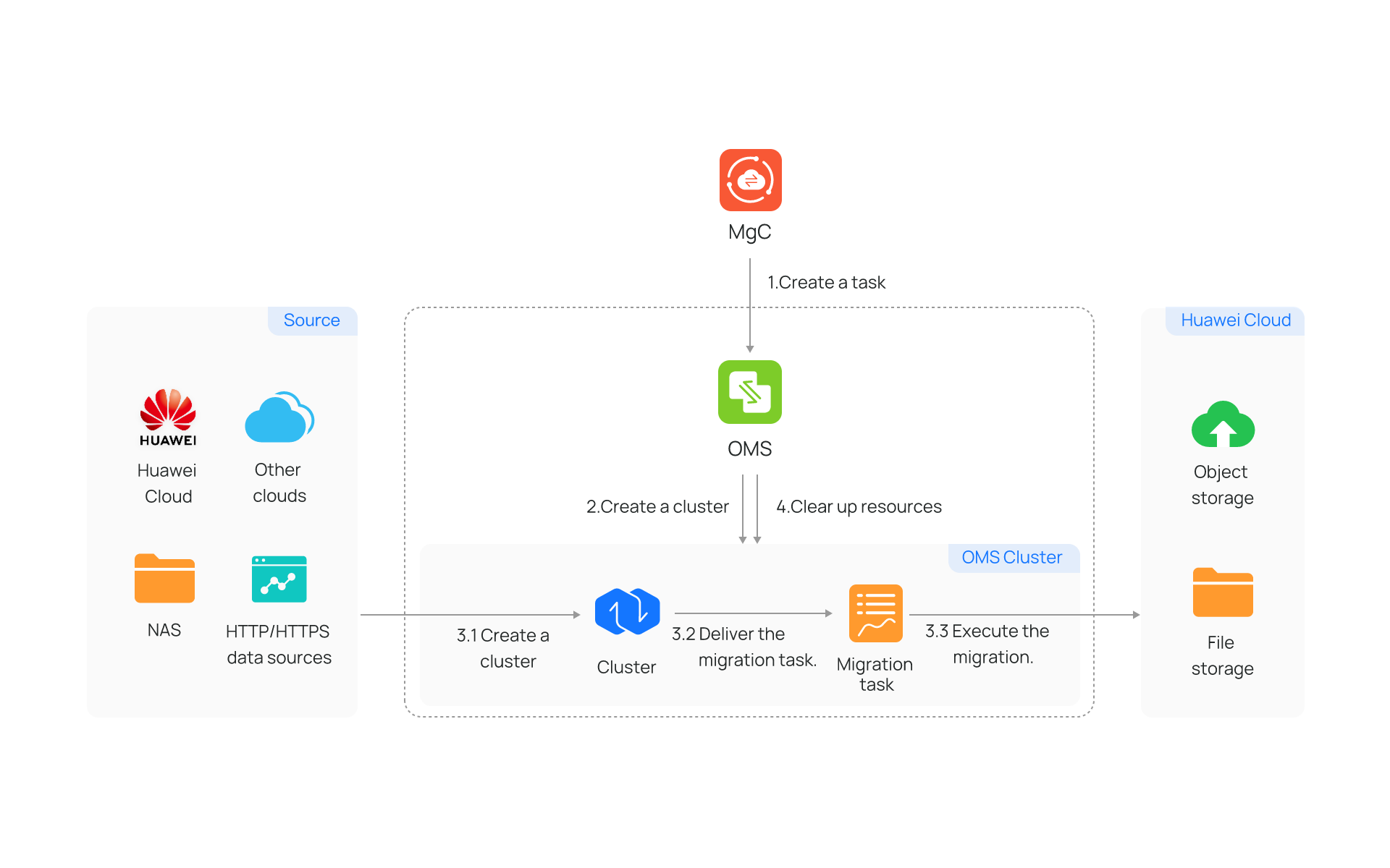MgC integrates multiple migration products from Huawei Cloud to meet your different requirements and enable you to manage migrations in a single place.