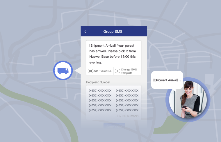 Send SMS notifications to users. SMS notifications may include shipment arrivals, payment confirmations, system maintenance, and system upgrade notices.