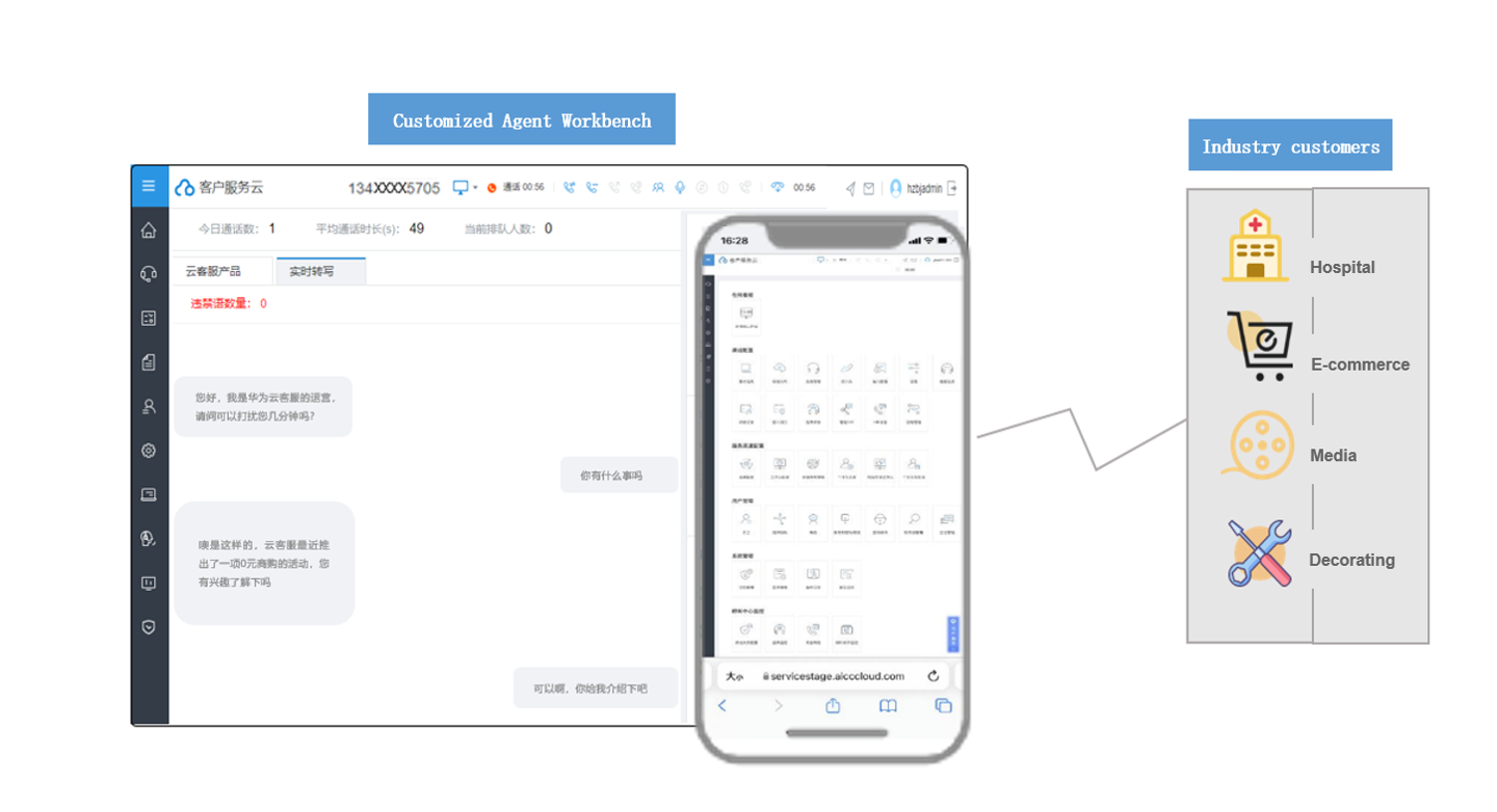 Sorts agent workflows and business functions based on business scenarios, provides an easy-to-use one-stop agent workbench that integrates all functions for enterprise call centers, and helps customer service partners enhance their customer service platform capabilities.