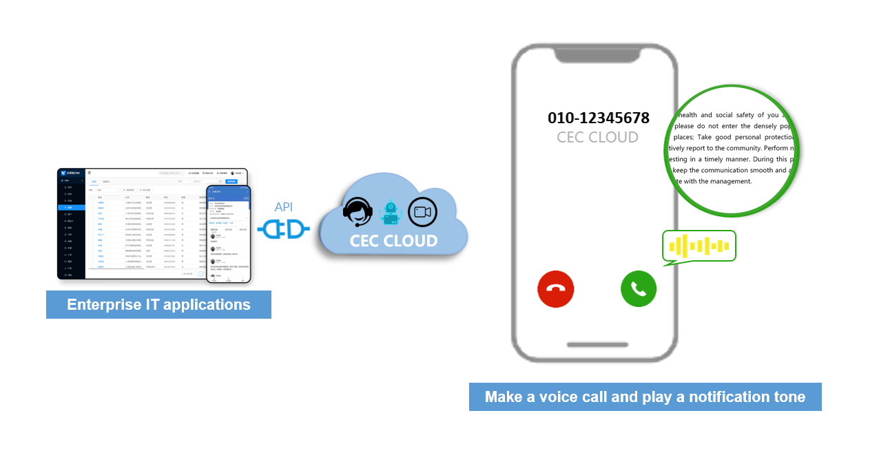 2. CEC receives the API invoking request from the CRM system and calls the employee and customer's mobile phone.